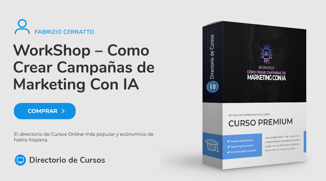 El WorkShop – Cómo Crear Campañas de Marketing con Inteligencia Artificial de Fabrizio Cerratto es un taller práctico que enseña a emprendedores digitales a integrar herramientas de IA en publicidad online, desde la generación de creativos hasta la segmentación precisa de audiencias. Diseñado para coaches, marketers y dueños de agencias con campañas estancadas o presupuestos limitados, resuelve el desafío de baja rentabilidad en ads al automatizar procesos que antes tomaban horas, como redacción de copys persuasivos y análisis predictivo de resultados.